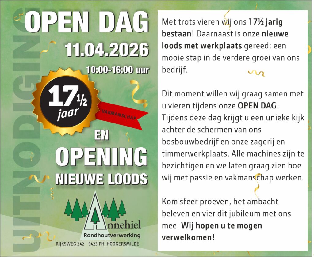 IN VERBAND MET ONZE OPEN DAGEN ZIJN WIJ